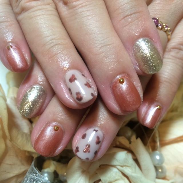 本日のお客様ネイルです。 ブログをチェックして頂いていて、その中から気になったデザインがあるとのリクエストでした。 そのデザインとは少しお色を変えて…秋色のネイルです☆ 藤井