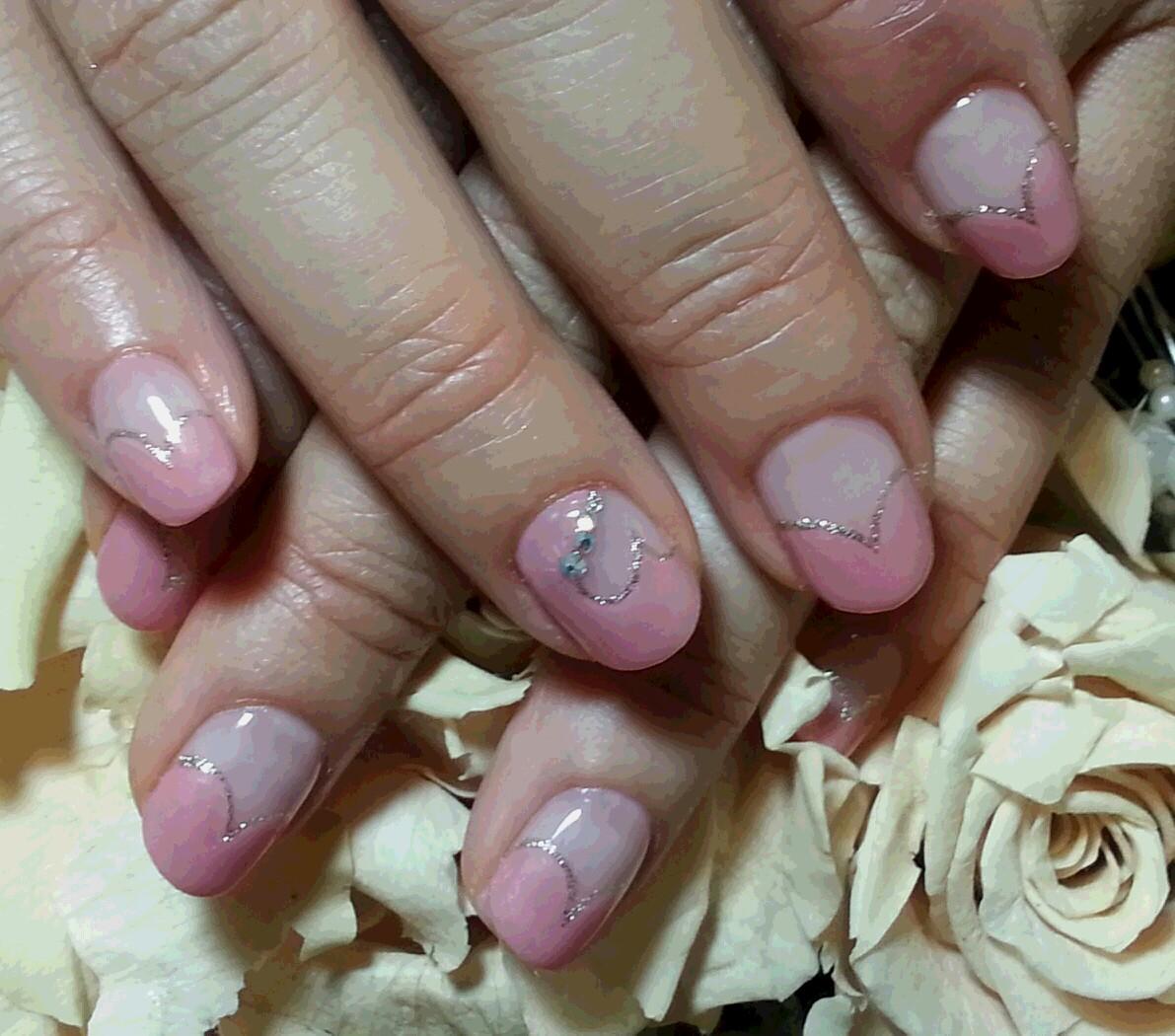 本日のお客様はピンクでハートフレンチ。先端がハートになっていて可愛いですね。
