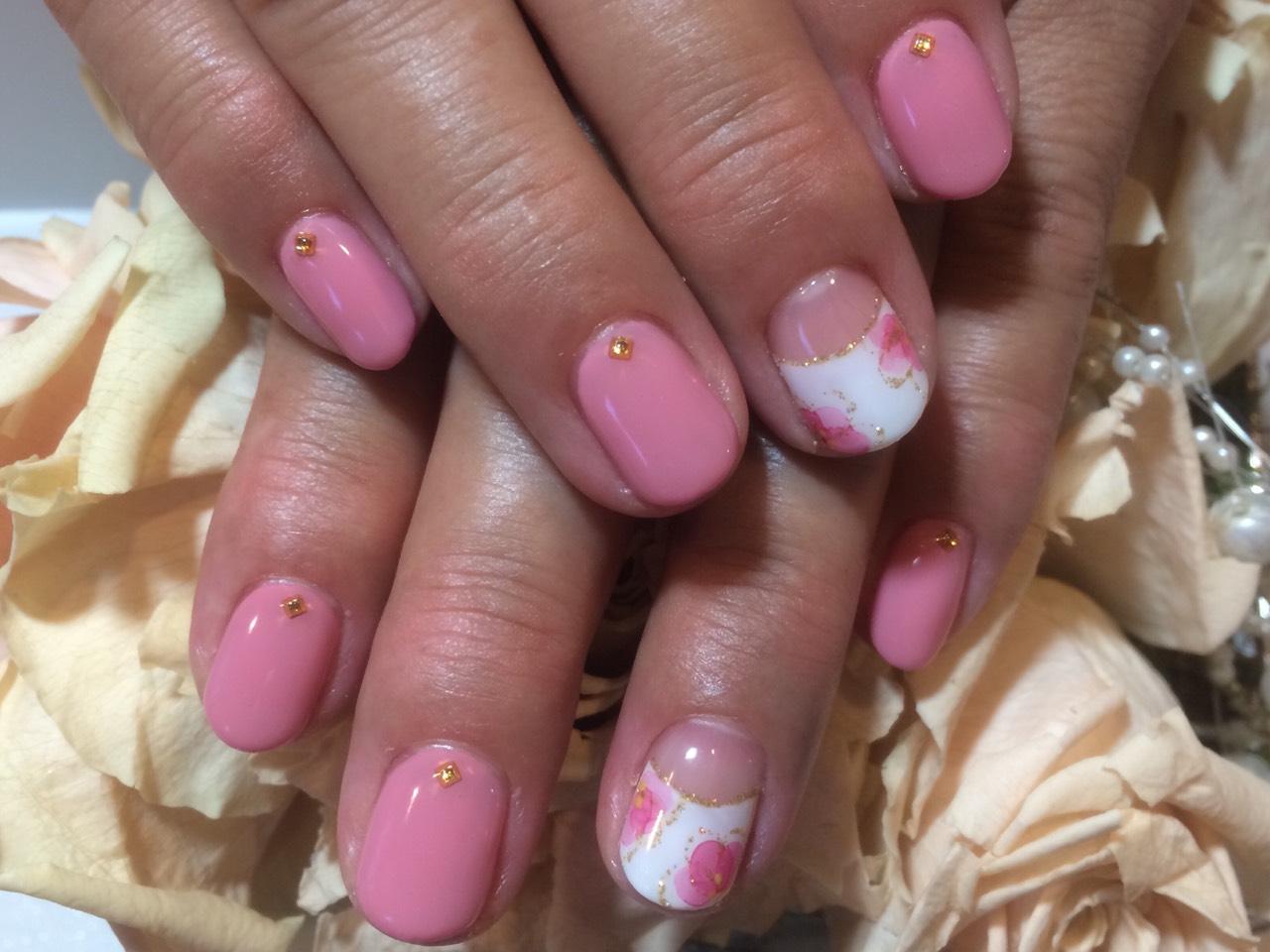 本日のお客様ネイルです。クリア感のある花柄アートがとっても可愛いです♪ 三木 有理