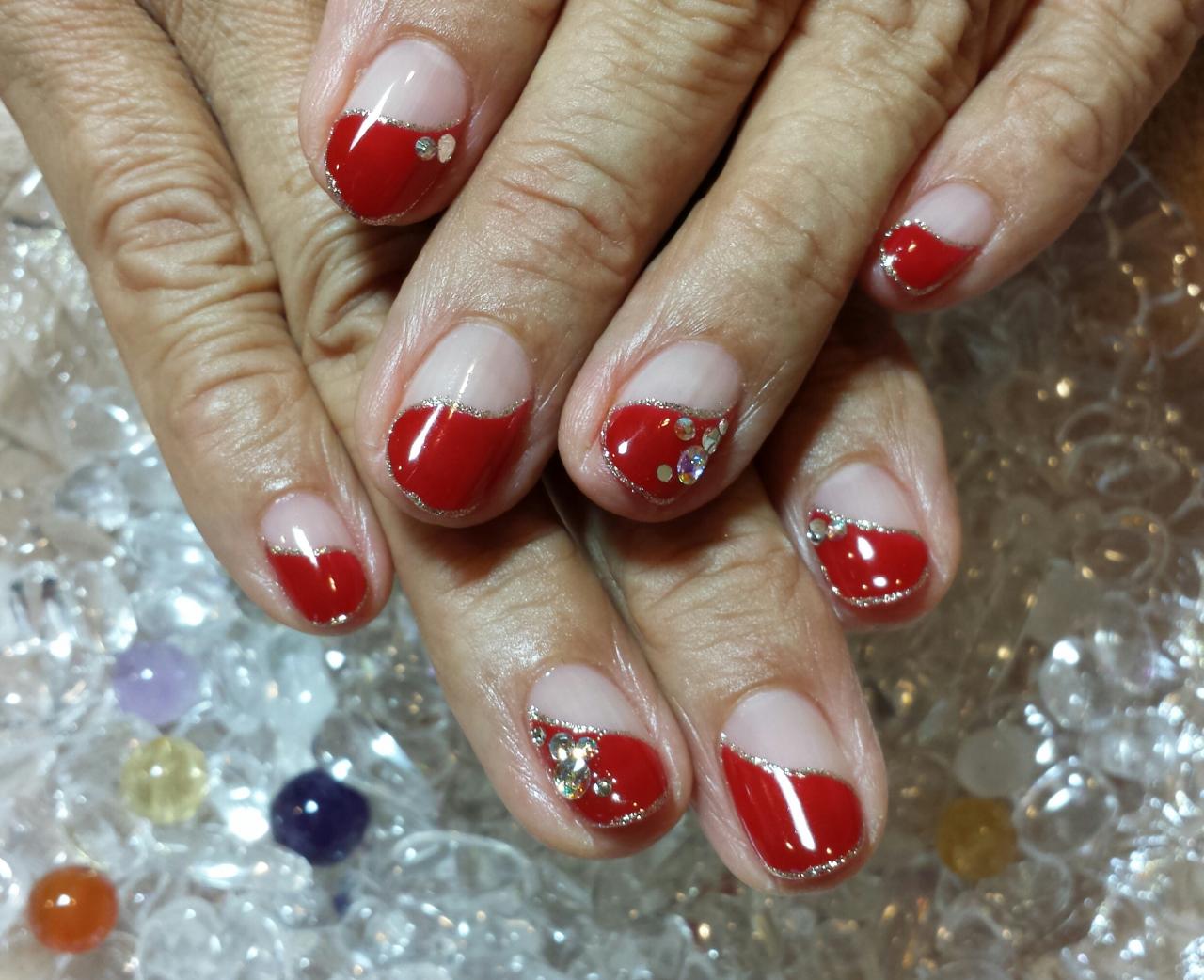 私がしているネイルと同じデザインをオーダーして頂きました。赤は映えますね♪