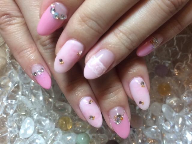 毎回デザインを持ち込んで下さいます。お色は決まってピンクです。毎回微妙に違うピンク色の組み合わせ。可愛らしい感じがとてもお似合いです☆