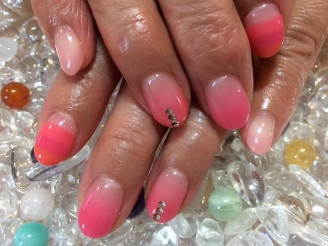 デザインを持ち込んで頂きました。ピンクのグラデーション。それぞれ指によっても違うピンクを使ってます。人差し指はボーダーでグラデーション風になってます☆