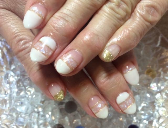 オフホワイトのフレンチ。貝殻を散りばめているので、早くも初夏の爽やかな雰囲気になりました☆