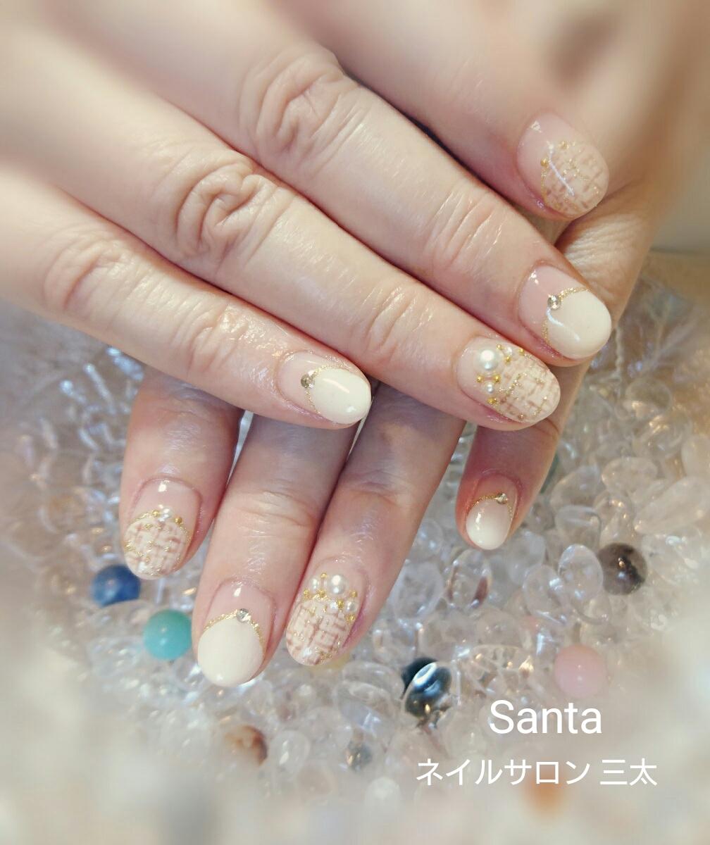 茶系2色を使ってツイードネイルにされました。大きなパールが入ってとても素敵になりました♪