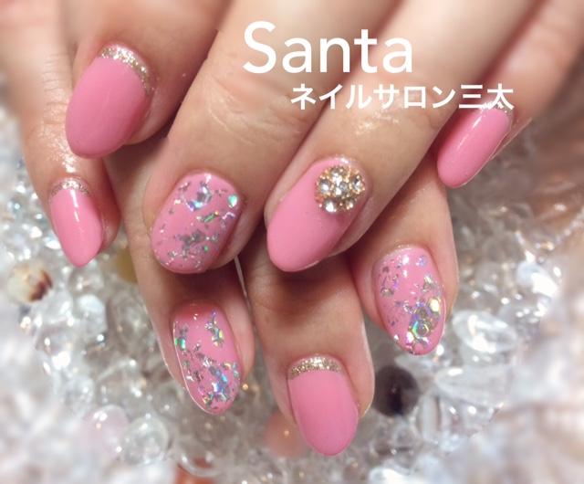 本日のお客様ネイルです。アルミホイルのような素材を使ったホイルアート。