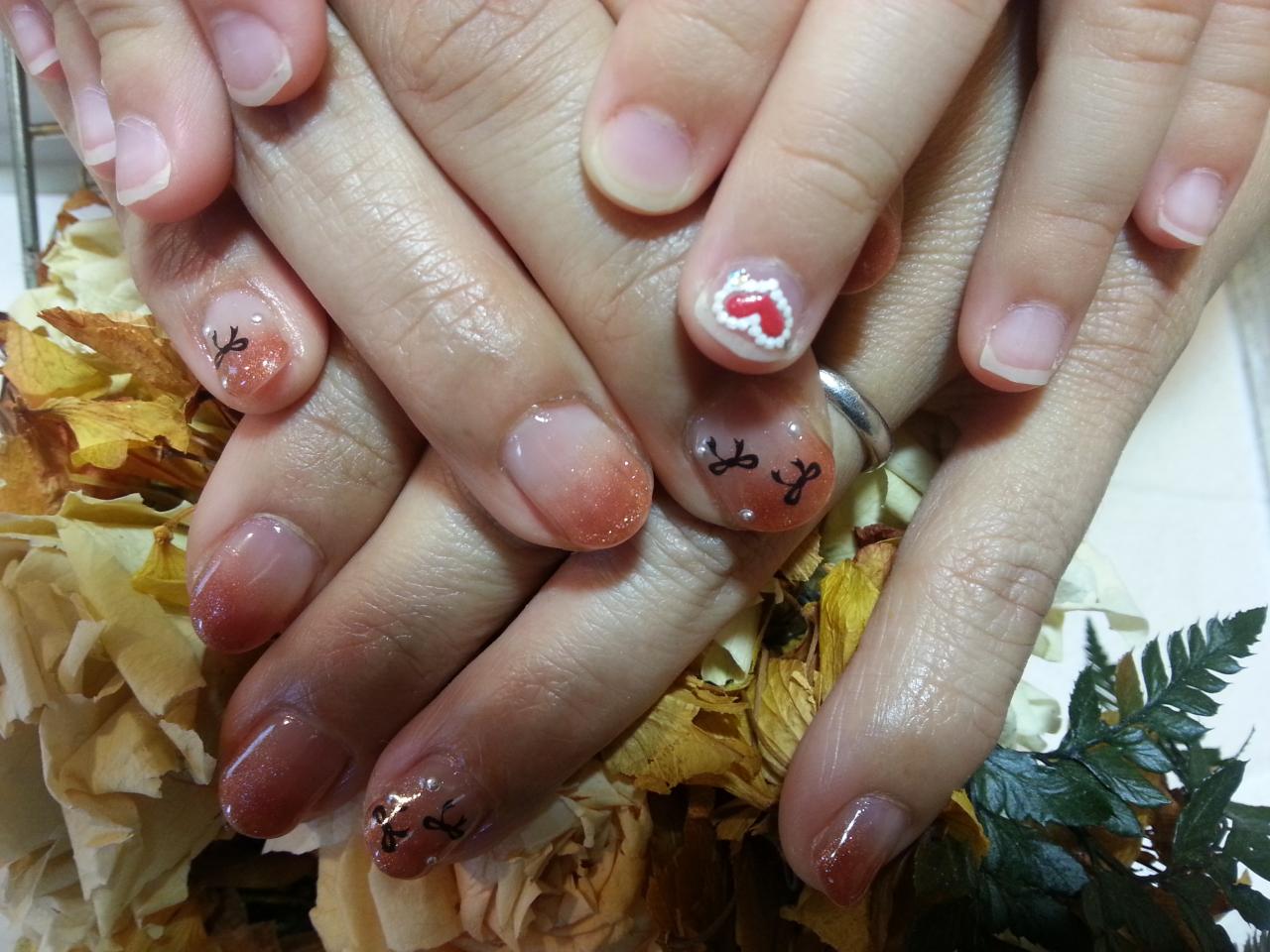 お嬢様には待って頂いたお礼に1本ネイルシールのサービスをしました。小さな手にハートのシールがとっても可愛いです♪