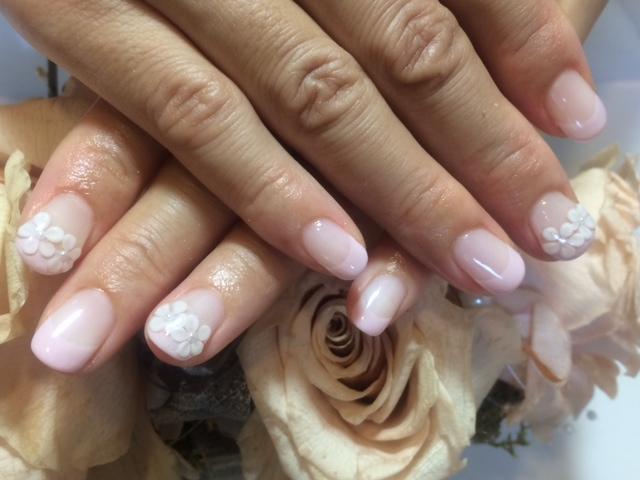 薄いピンクのフレンチにフラワーのアート。