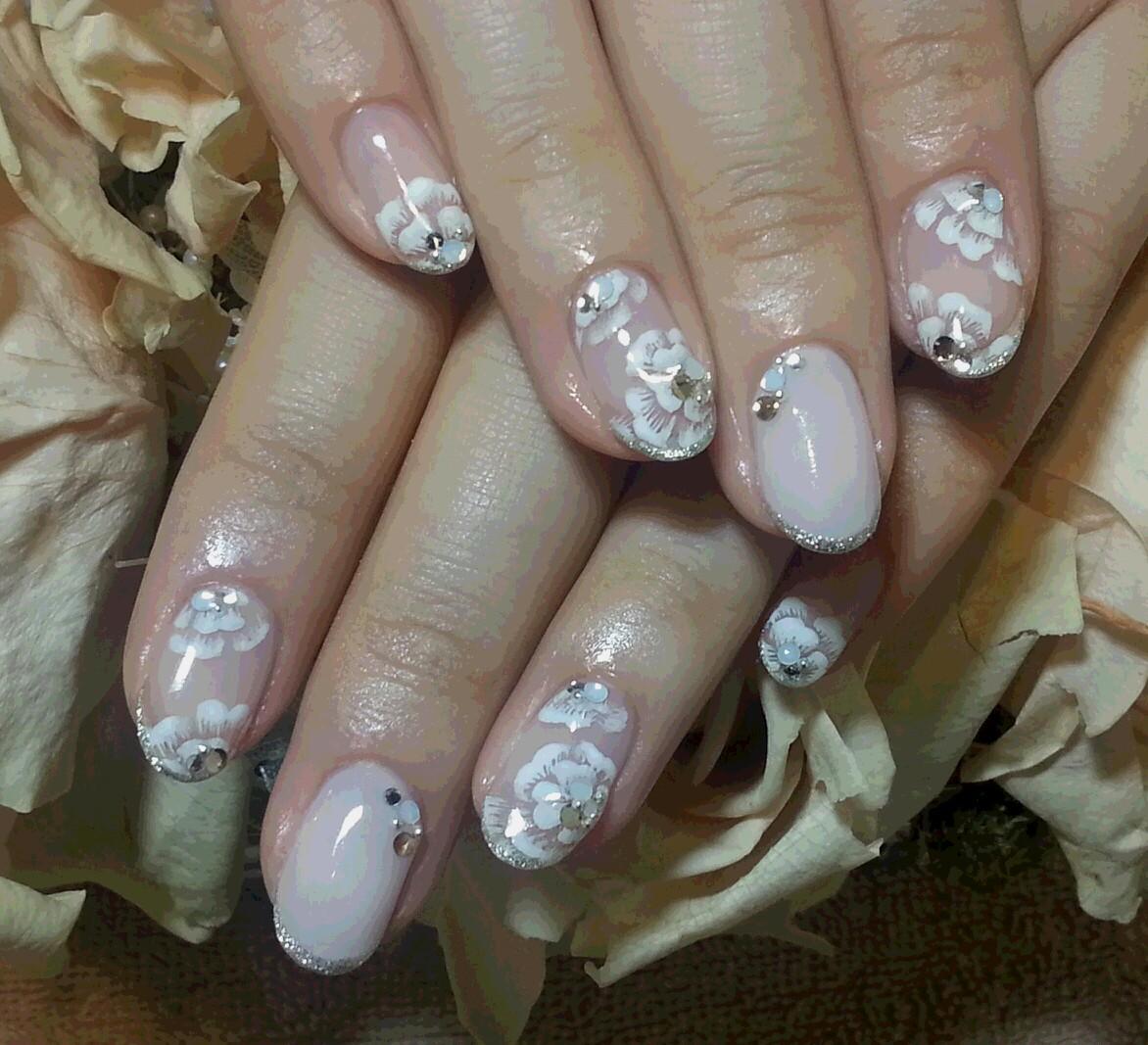 とっても素敵なネイルになりました。一生に一度のブライダルネイルをさせて頂きありがとうございました(^O^)