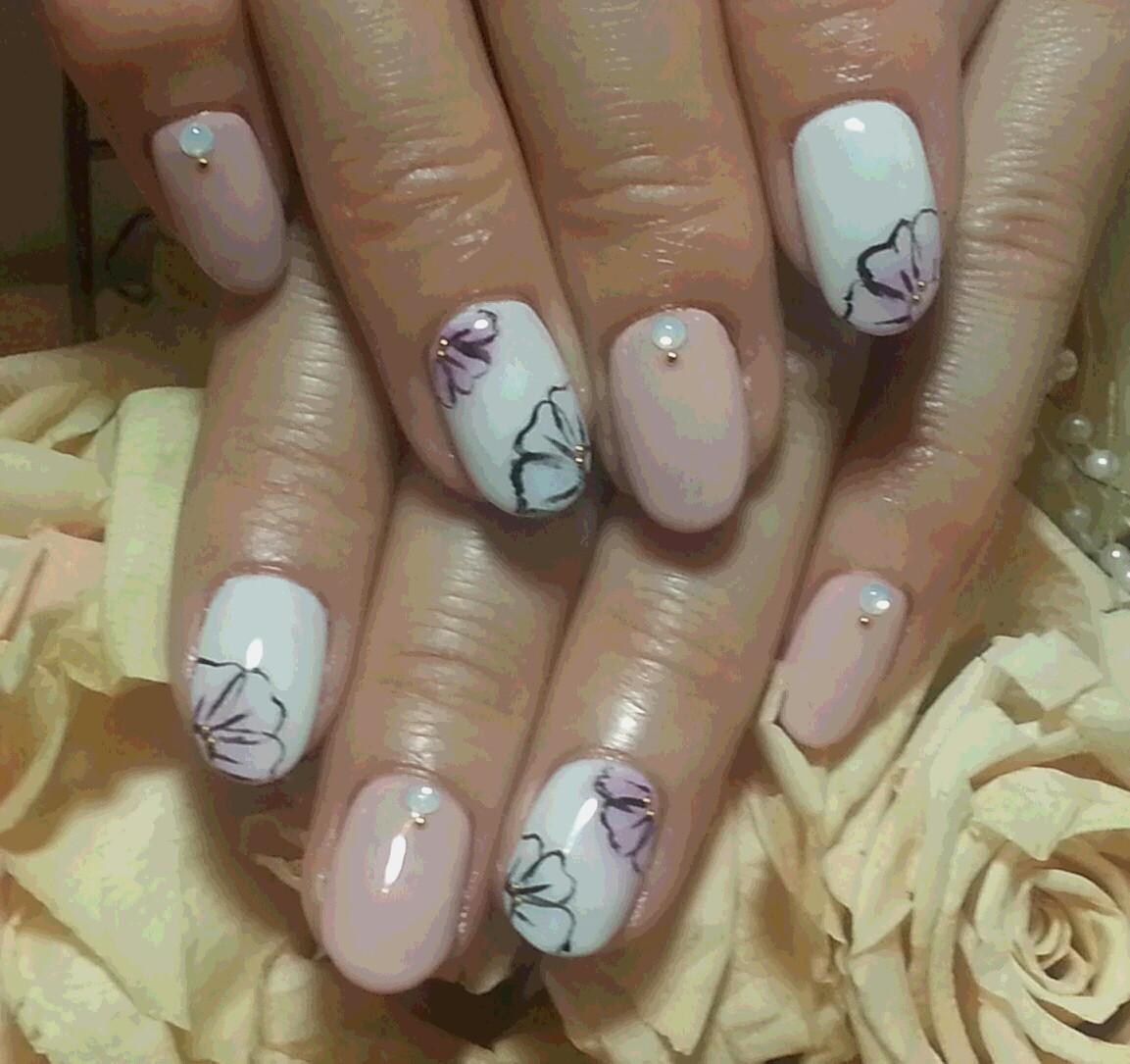 本日のお客様ネイルです。キャンペーンネイルより、お花のアートを選んで頂きました。お花はペイントですのでお客様のお爪の大きさ合わせて描いていきます♪