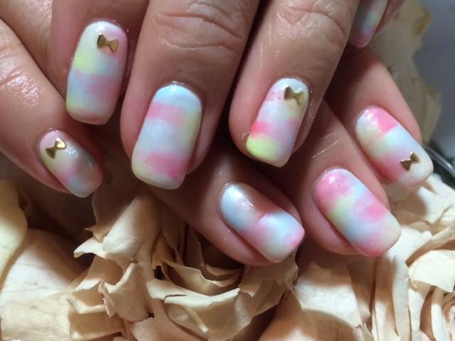 キャンペーンネイルから、淡いカラーを少しぼかしたボーダーアートです。キャンディみたいな可愛らしいお色味です☆