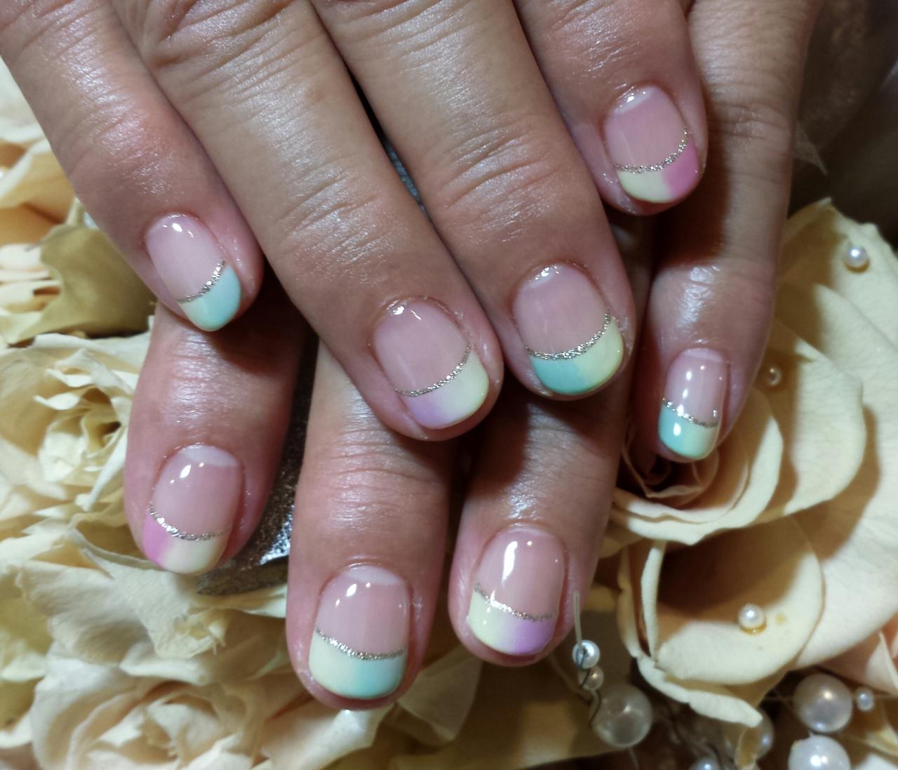 本日のお客様ネイルです。フレンチネイルをグラデーションにし、可愛いです♪ 三木 有理