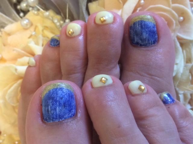 フットネイルにデニム柄をされました。お写真では分かりづらいのですが、マットのトップコートでお仕上げしました。デニムの質感がリアルに出ていい感じになりました☆