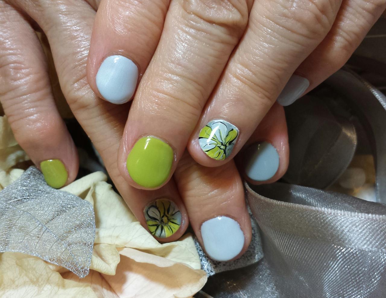 先日ブログに記載していた新しいデザインです。今回は薬指にアートを施しました。使用しているカラーはグレーパール、グレー、グリーン、全て新色です。特にグレーパールは人気商品で売り切れ中とか。是非お試し下さい♪