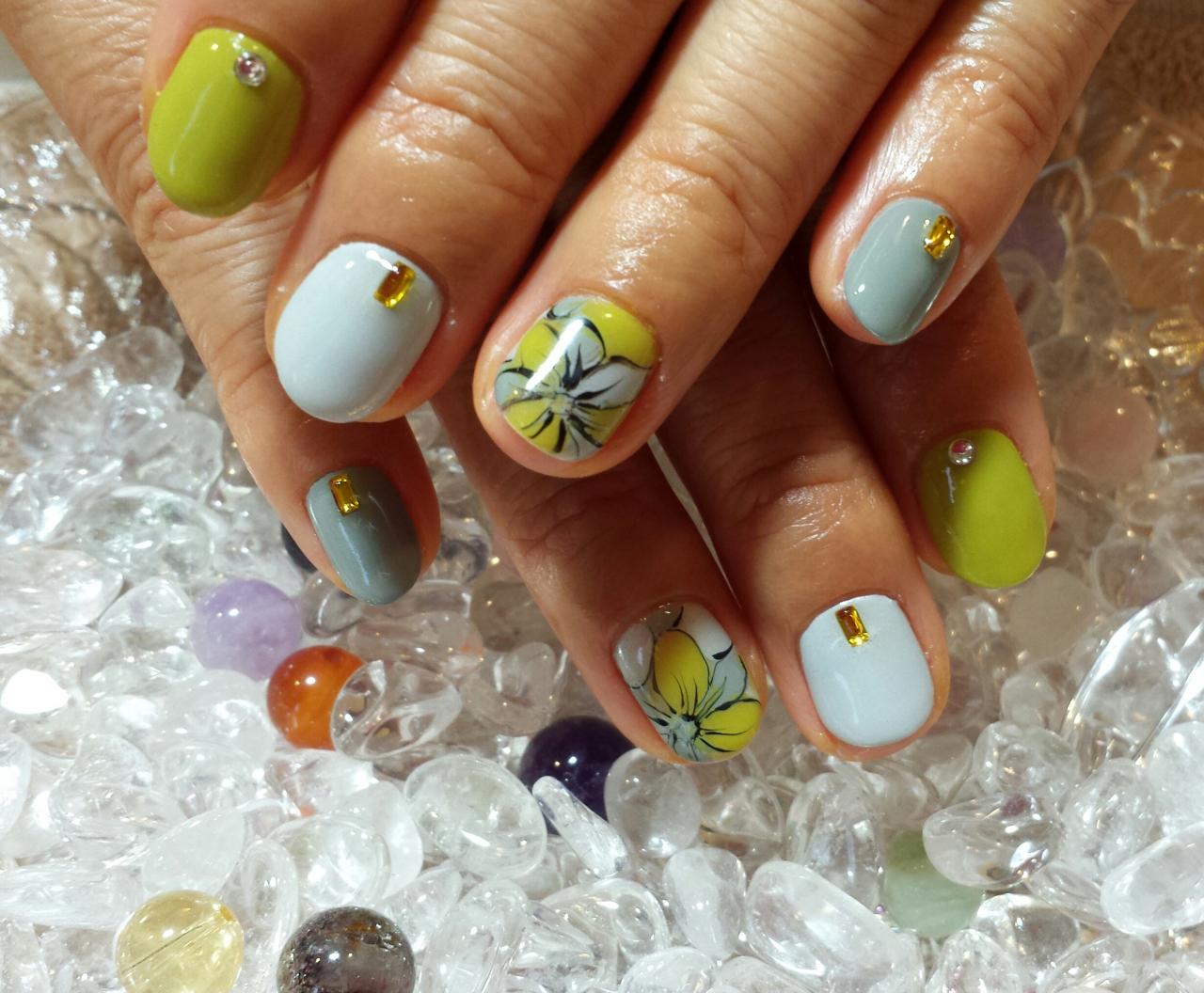 キャンペーンネイルより選んで頂きました。お花のアートは独特な感じで素敵です♪
