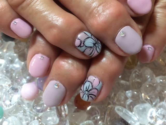 キャンペーンネイルのお色違い。ピンク系でまとめられました。