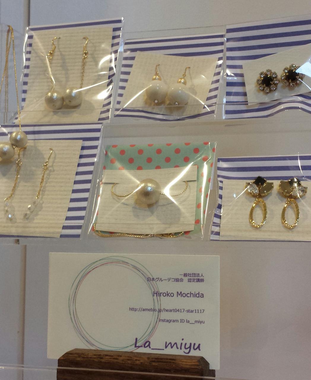 本日のお写真は委託販売させて頂いている。アクセサリー&鞄のご紹介です。学生時代の先輩から連絡があり、手作りアクセサリーを3ヶ月限定で置いて頂くことになりました。ファー付きのイヤリングがすぐに売れてしまいましたが新しいデザイン入荷予定です。(La__miyu(ラ・ミュー)さん)