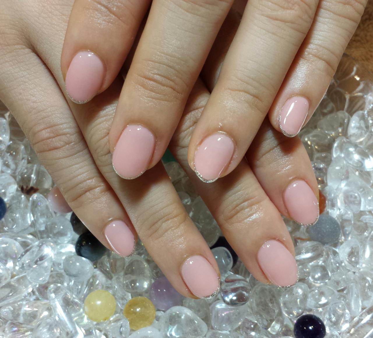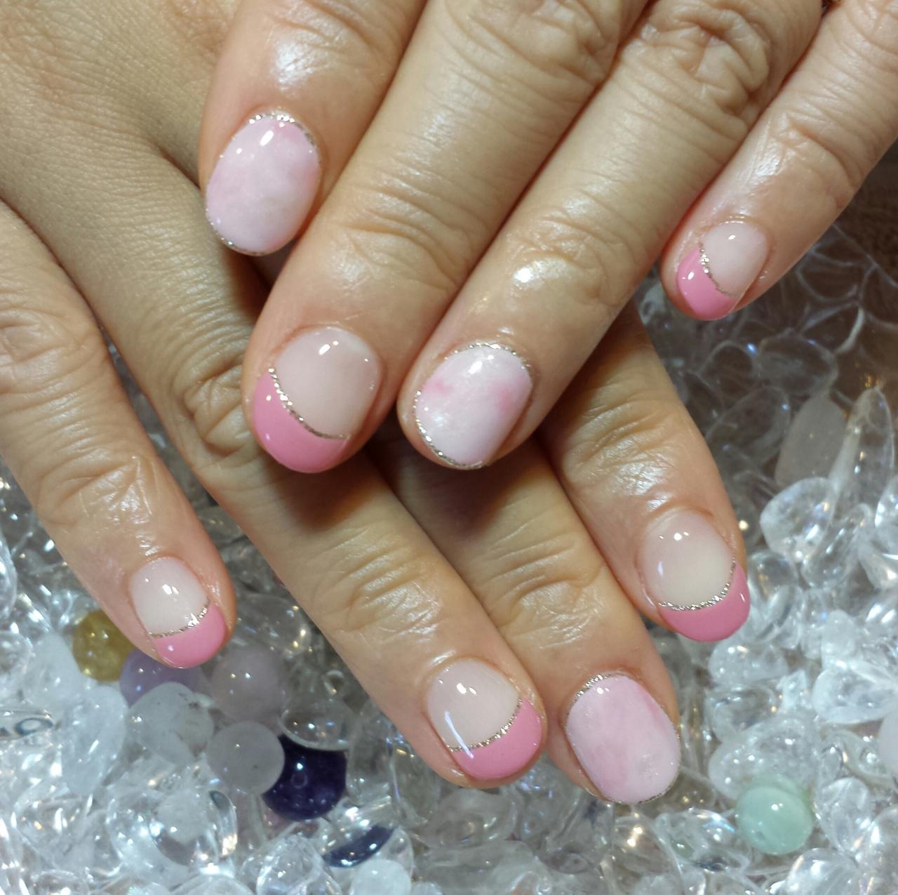 本日のお客様ネイルはお写真2枚です。1月に入り、優しいピンク系が人気です。デザインもシンプルなものを選ばれる方が多いです。