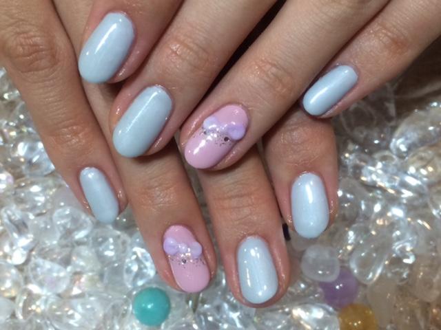 グレーの中にピンクを一本づつ入れました。ポイントアートは3Dのリボンです☆