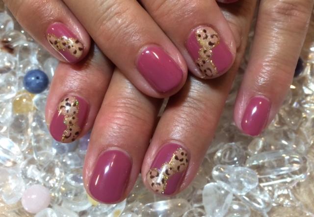 落ち着いたピンクのワンカラーにヒョウ柄のリボンを描きました。