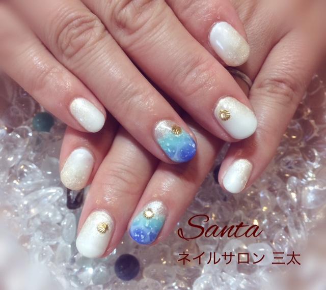 最近人気の夏ネイル。海と砂浜、夏のビーチをイメージしています。リゾート地に行きたくなりますね〜☆