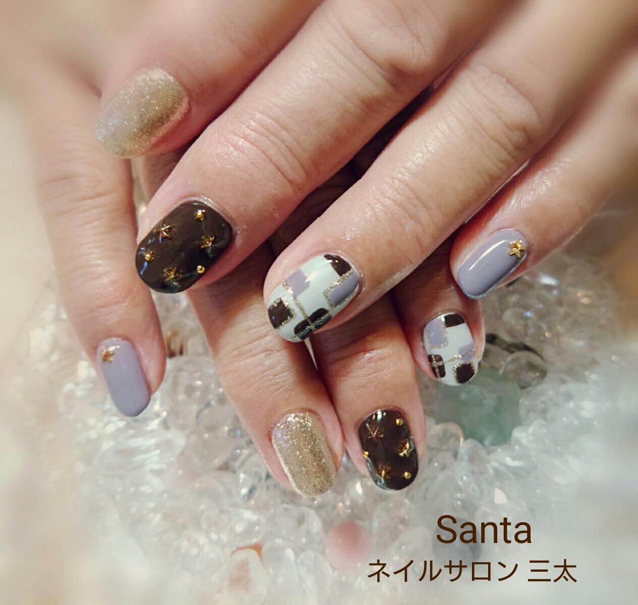 本日のお客様ネイルです。星のスタッズを使ったデザインです。クリスマスの雰囲気もあり、人気がでそうな予感です♪