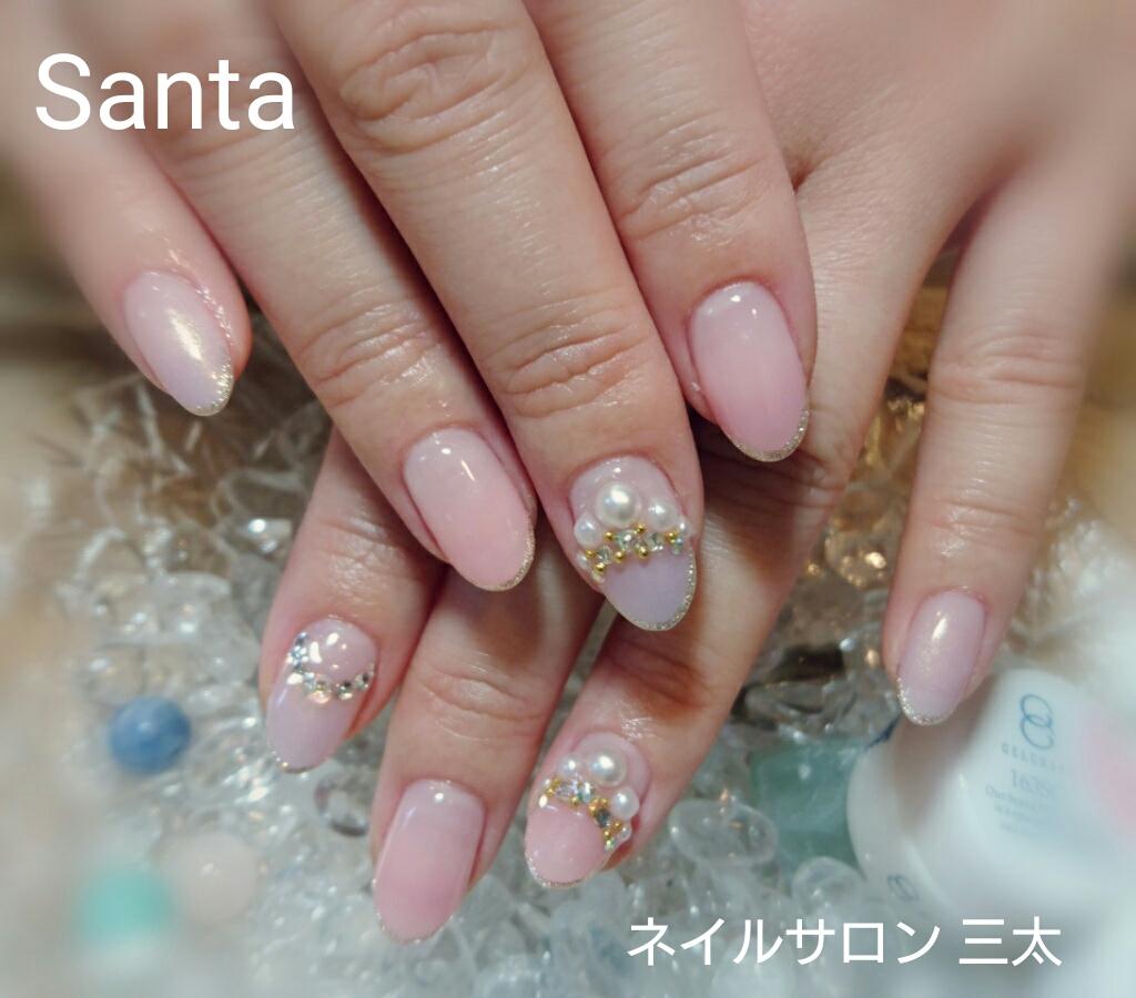 新色が綺麗!と早速使って頂きました。大きなパールが印象的なプリンセスネイル風になりました♪