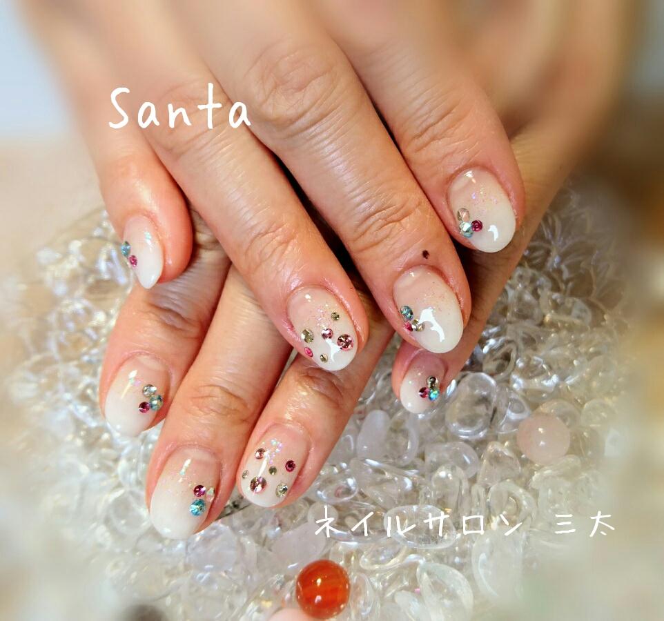 本日のお客様ネイルです。キャンペーンネイルより選んで頂きました。白をベースにしているので、どんなカラーストーンも合います。好きなカラーを合わせてみて下さい♪