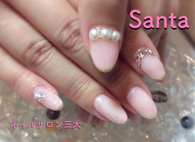 ストーンやパールのビジュー風のアートもプラスして、今日も女子力満載のネイルです☆